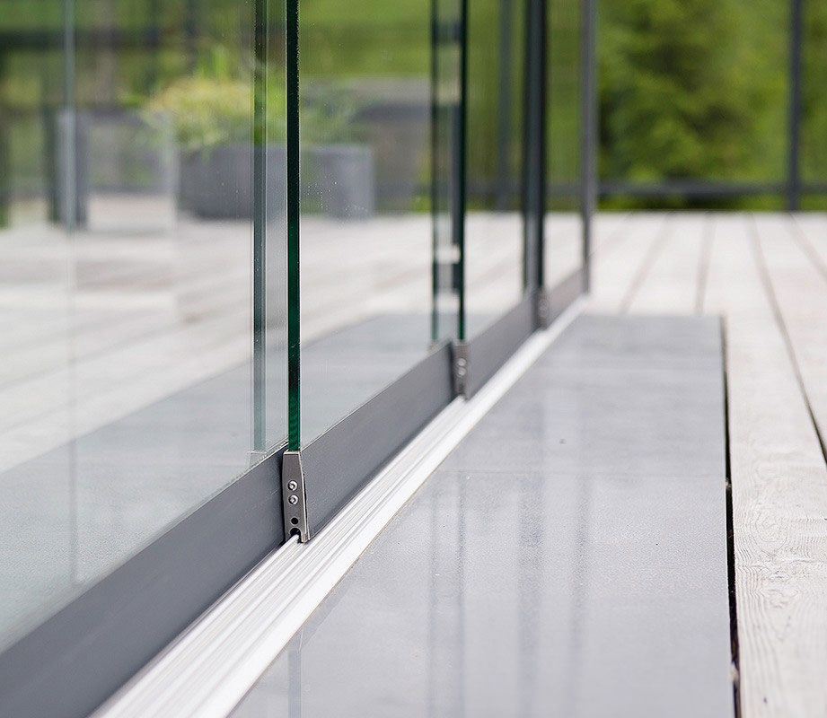 Wir verbauen ausschließlich ESG-Sicherheitsglas und arbeiten mit bewährten Gleitsystemen, die auch starker Witterung standhalten. Die Technik ist langlebig und wartungsarm.