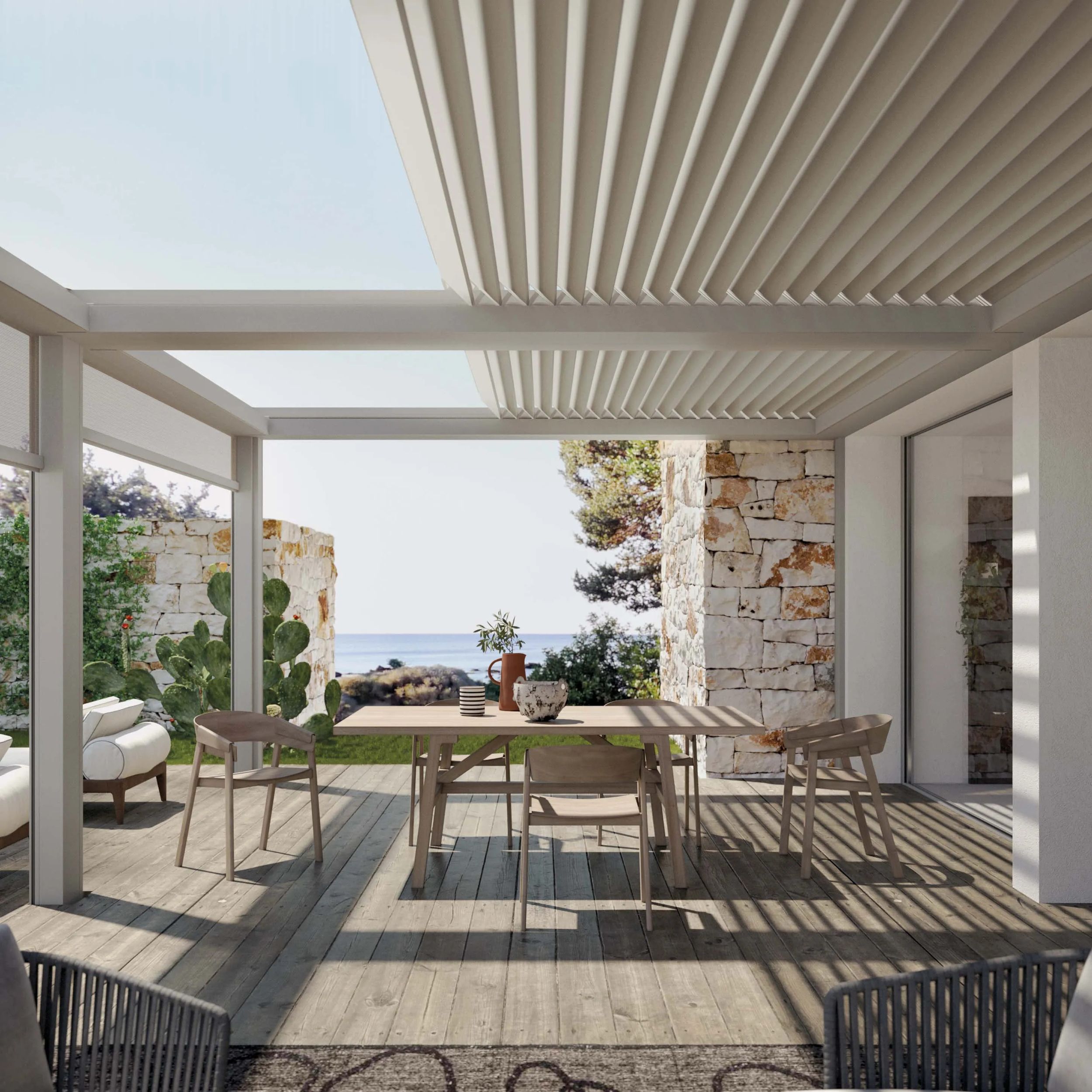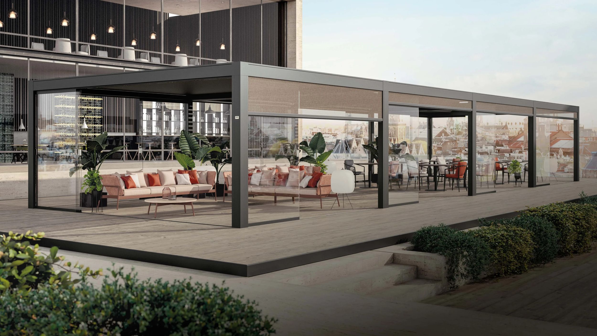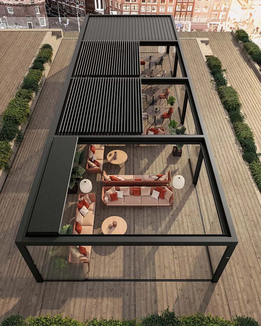- Mehr Freiheit: Durch dreh- und fahrbare Lamellen wird der Außenbereich wetterunabhängig nutzbar.
