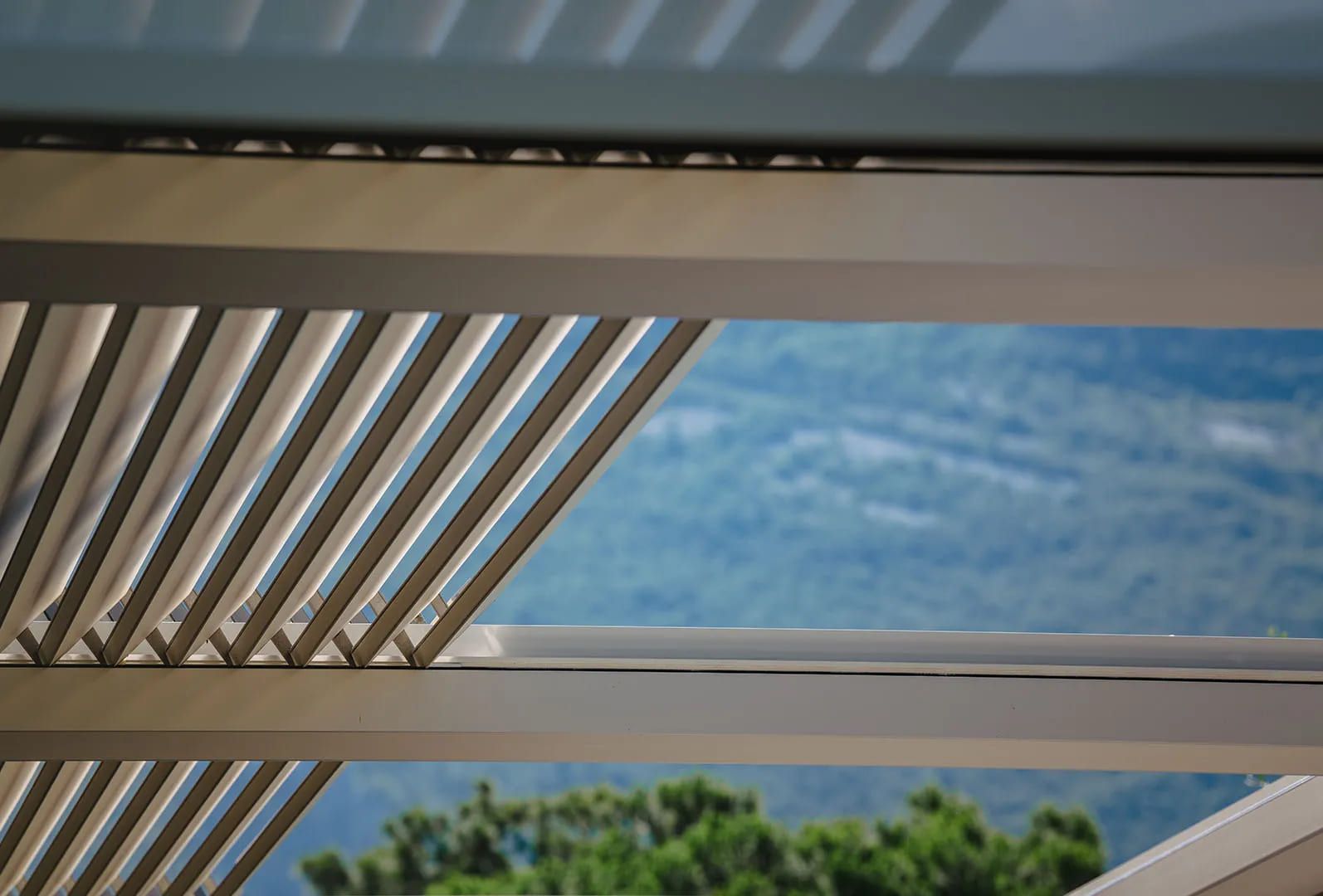 Unsere Dächer sind je nach Modell mit verstellbaren oder vollständig öffnungsfähigen Lamellen ausgestattet. Ein integriertes Entwässerungssystem leitet Regen sicher ab. Sensoren sorgen bei Wetterumschwung für automatische Reaktion.